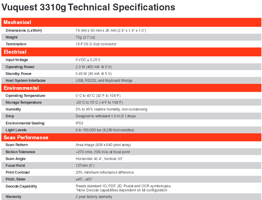 Máy quét mã vạch Honeywell Vuquest 3310g